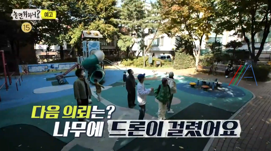 놀면특공대 5인은 아이의 요청에 따라 한 놀이터를 방문하여 나무위에 걸린 드론을 찾아야해요. 드론보다 더 많이 걸려있는 다양한 잡동사니들 ㅋㅋ