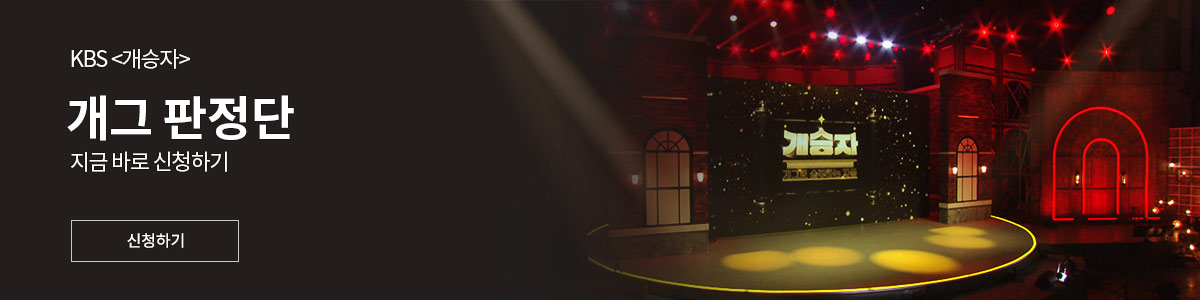 KBS 개승자 개그 판정단 신청하기 페이지로 바로 가기 >>> 개(그로) 승(부하는) 자(들) > 개그 판정단 모집 | 디지털 KBS