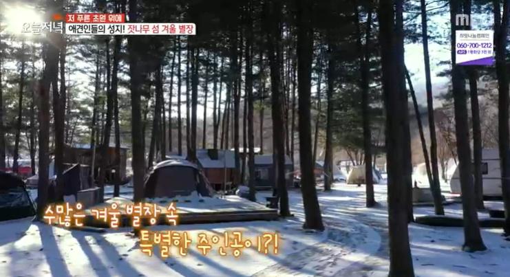 (오늘저녁 저푸른초원위에 잣나무섬 겨울별장 캠핑장)