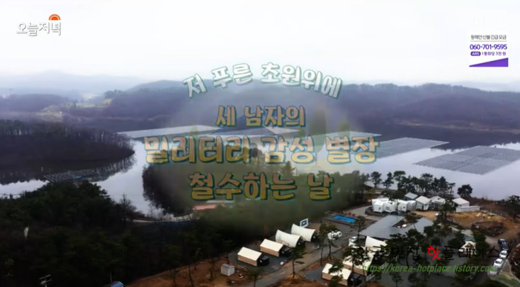 생방송 오늘저녁 저푸른 초원위에 세남자의 밀리터리 감성 별장 청주 저수지 뷰 캠핑장 촬영지 위치 어디?