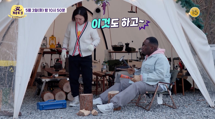 당황할 시간도 없다! 오자마자 장작 패고 불붙이는 법까지 속전속결로 가르쳐주는 숙!