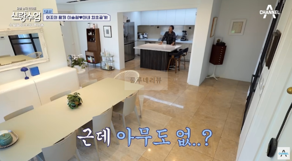 이승철 집 현관으로 들어오면 오른쪽에 부엍, 왼쪽에는 다이닝 테이블이 있네요.