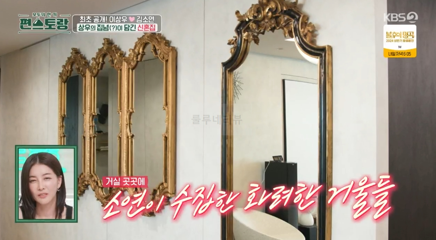 편스토랑 이상우 김소연 신혼집 공개 현관에서 거실로 들어가는 벽에 걸린 엔틱 거울들