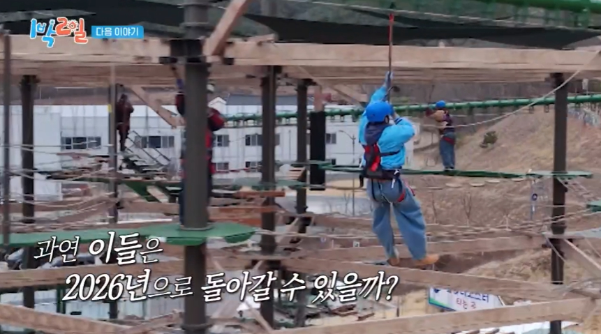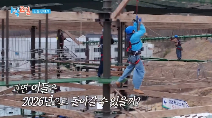 멤버들은 안전 장비를 착용한 뒤 차례로 코스에 도전했다. 하지만 예상보다 높은 난이도에 곳곳에서 웃음과 비명이 동시에 터졌다. 발을 디딜 때마다 흔들리는 발판, 몸을 지탱해야 하는 로프 구간은 긴장감을 극대화했다.