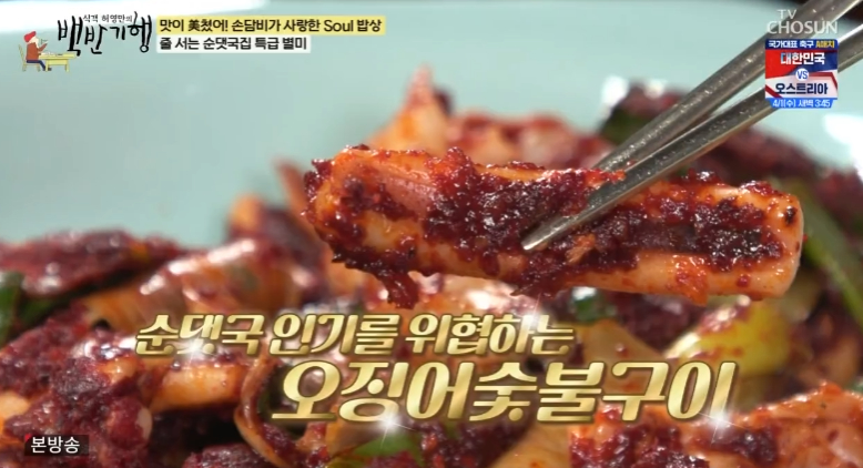2026년 3월 29일 일요일 저녁 7시 50분, 식객 허영만의 백반기행 340회 방송에서는 한식 사랑꾼 손담비가 식객으로 출연하여 우리가 사랑한 soul 밥상 편이 방영됩니다. 강남 줄 서는 식당 순댓국밥집에 특급 별미로 소개된 것은 오징어숯불구이(직화구이)입니다.